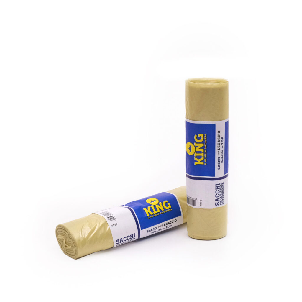 La linea KING LEGACCIO offre sacchi in plastica riciclata e riciclabile, antigoccia e colorati.